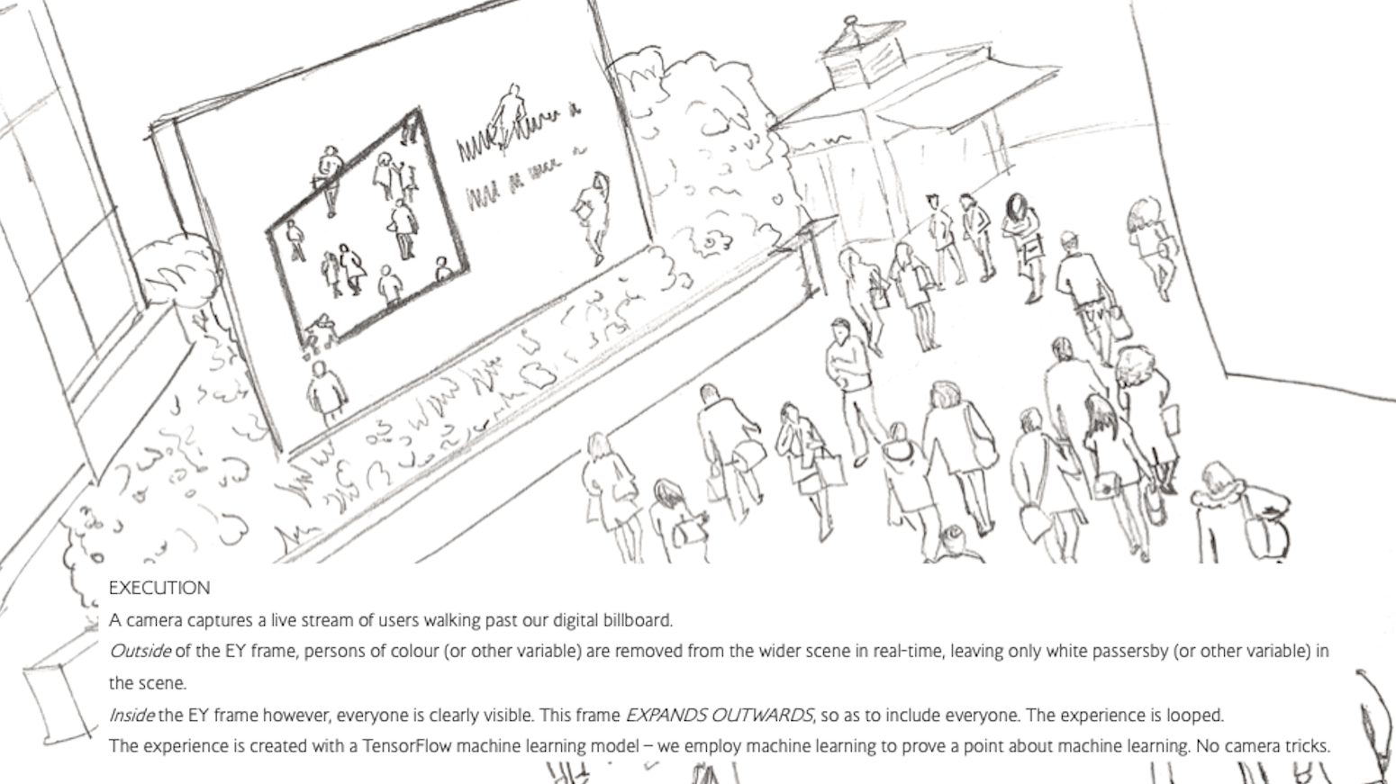 We want to provoke conversation on the topic of inclusive technology by giving people a digital out-of-home experience of first being excluded and then included by tech – “the medium is the message”. This positions EY as the AI consultancy bold enough to ask difficult questions.